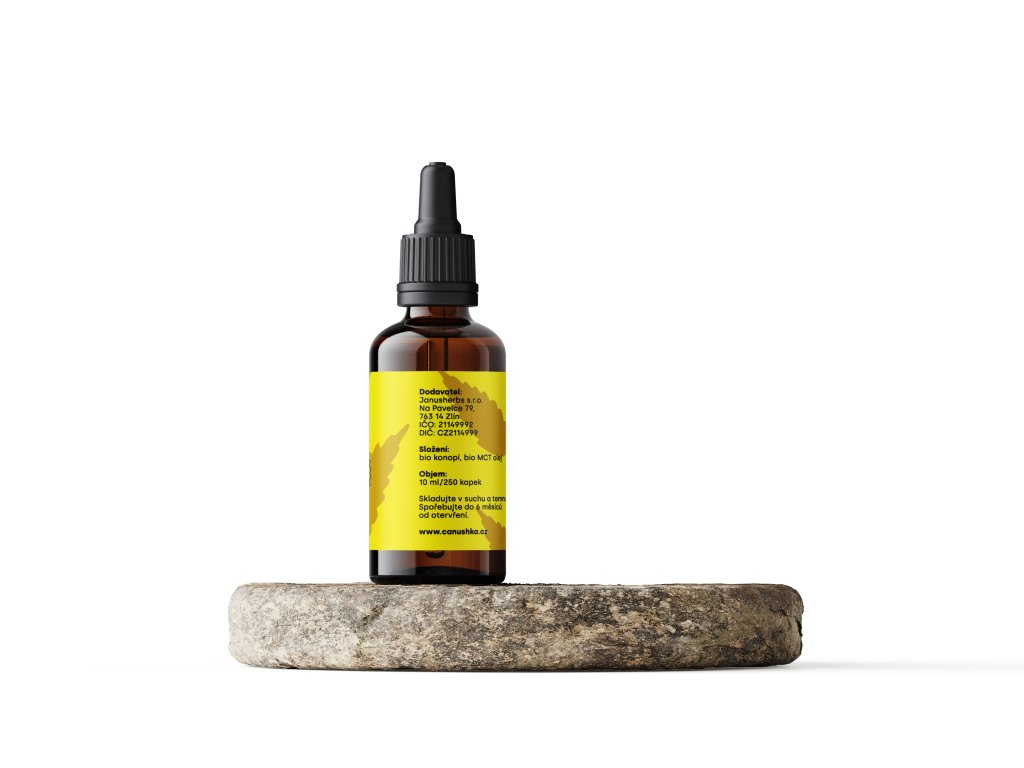 Složení: BIO MCT kokosový olej, fullspektrální extrakt z technického konopí (obsah CBG: 10 %, THC < 0,3 %)